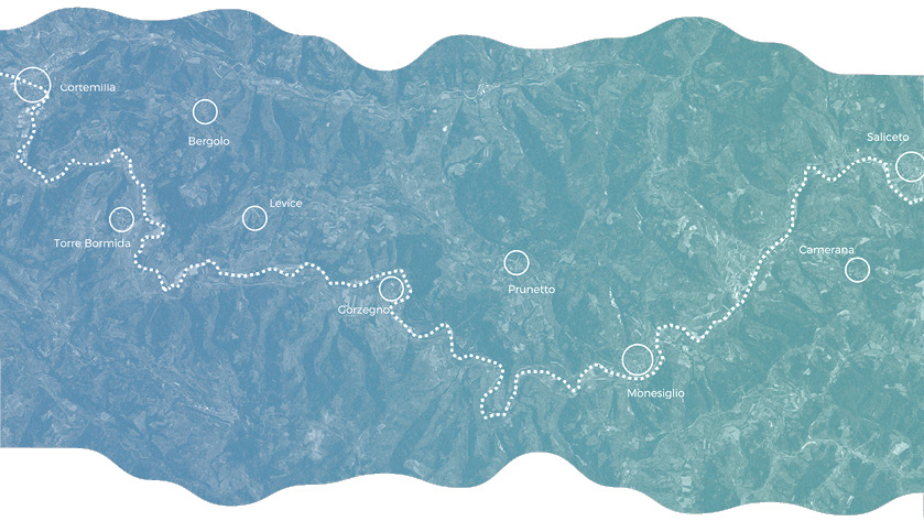 Il dispositivo potrà essere immaginato come elemento di caratterizzazione del territorio e dovrà configurarsi come un’architettura replicabile lungo l’intera asta fluviale – in costa e in valle –, così da considerare ciascuno dei 9 comuni in affaccio sul fiume Bormida (Bergolo, Camerana, Cortemilia, Gorzegno, Monesiglio, Levice, Prunetto, Saliceto, Torre Bormida).
