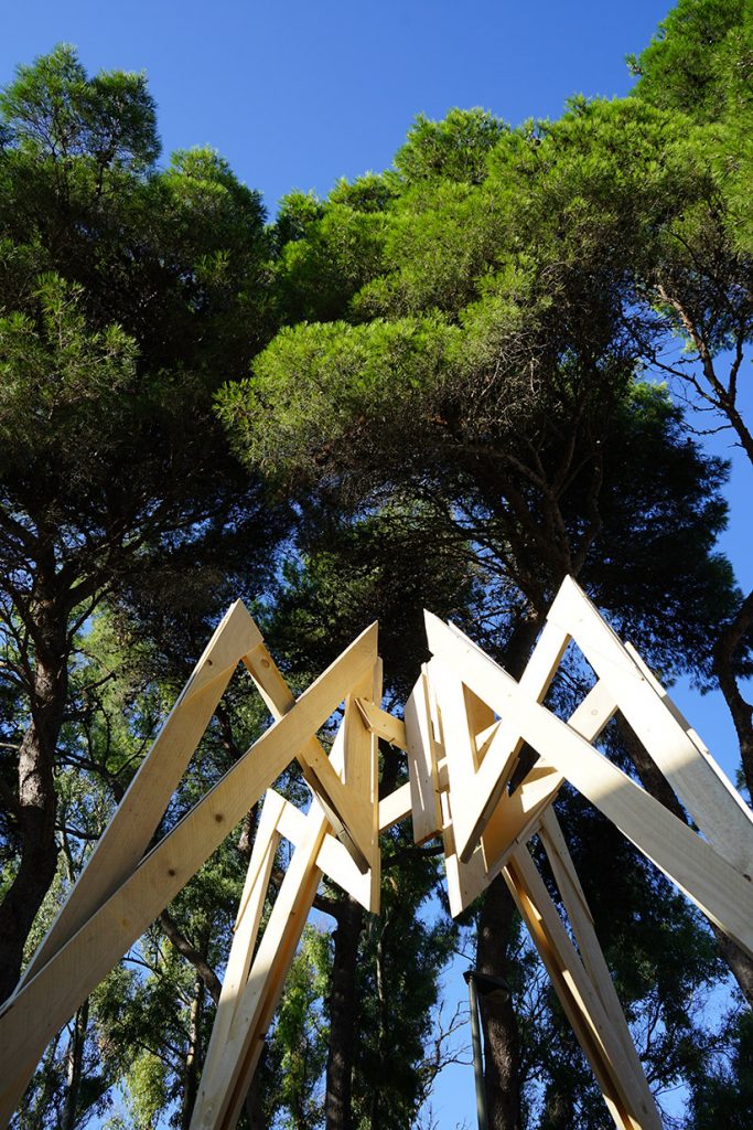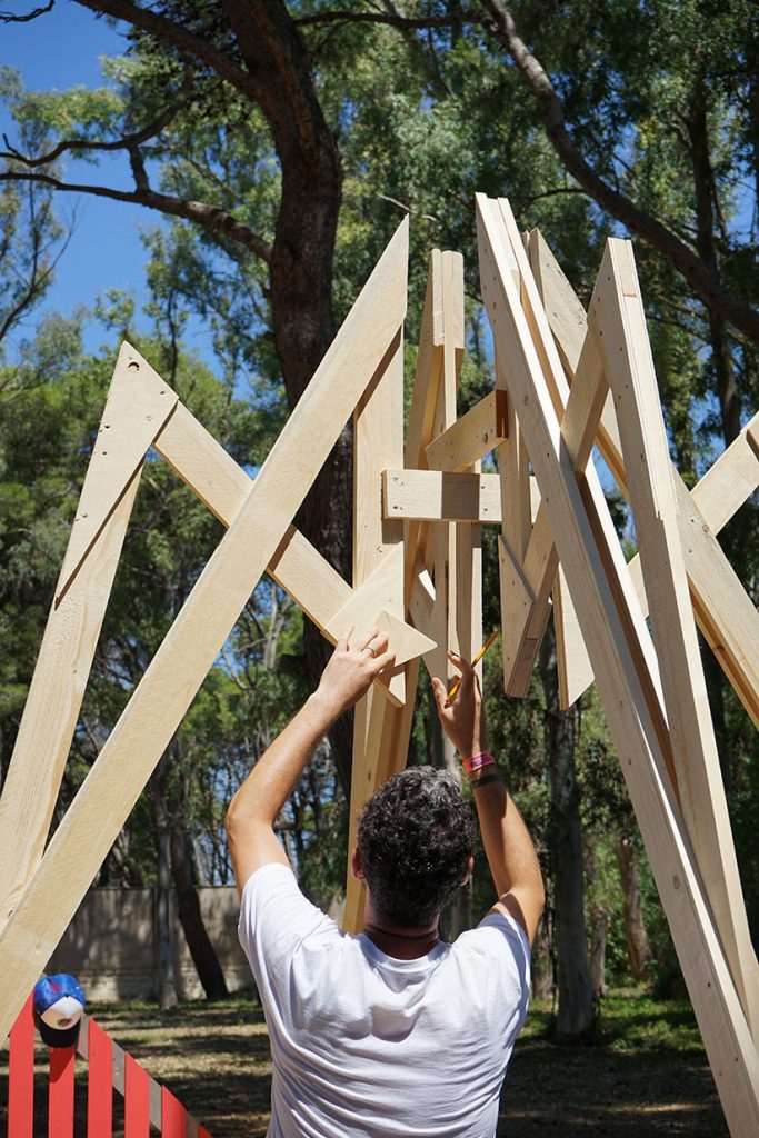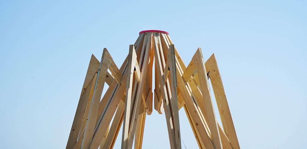 Lumia was created during a self-construction workshop in which, starting from a single repeated construction element, the installation was configured.