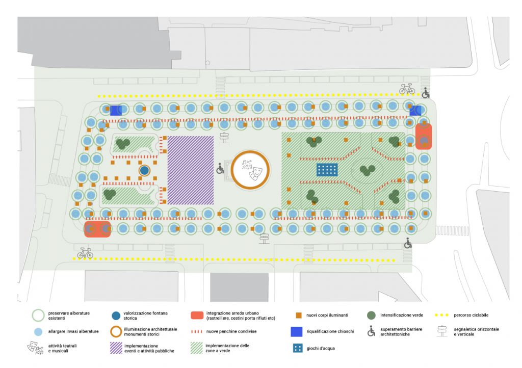 The process involved citizens and stakeholders of the territory so to identify a common vision of the transformation of public space.